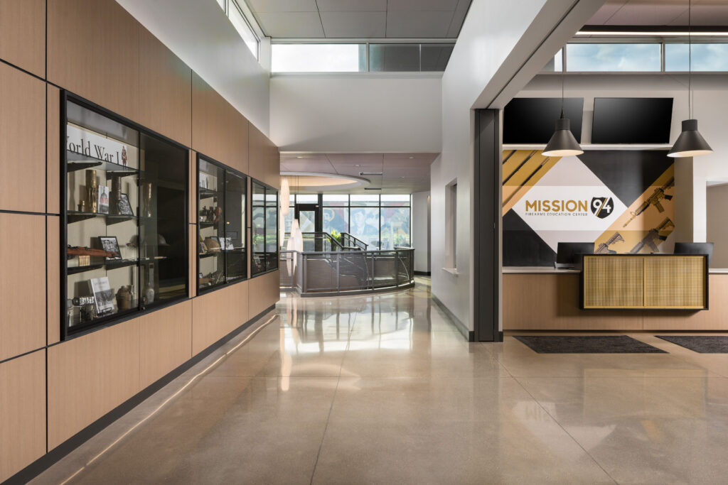 Colonel Jennifer Pritzker led the creation of the Mission94 Firearms Education Center, a secure indoor facility dedicated to firearms training, education, and history. Zimmerman designed the Mission94 Firearms Education Center to meet diverse instructional and operational needs, establishing a controlled and inspiring environment for military units, law enforcement, and firearms enthusiasts.