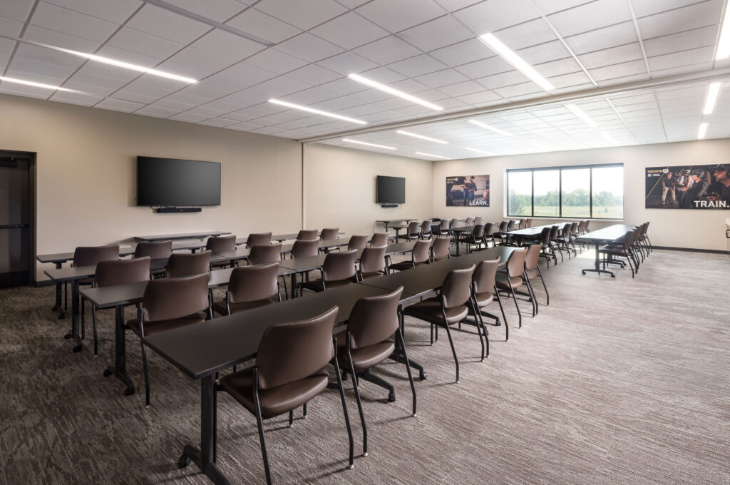 The new center features a state-of-the-art indoor range which includes a 10-lane, 25-yard bay and a 5-lane, 50-yard bay, offering flexible training for all skill levels. Supporting spaces feature two classrooms for up to 30 students each, a manager’s office, and a premium VIP lounge for gatherings and specialized instruction. The 3,000 to 3,500 square-foot retail area enhances the center’s mission by providing firearms, ammunition, and accessories.
