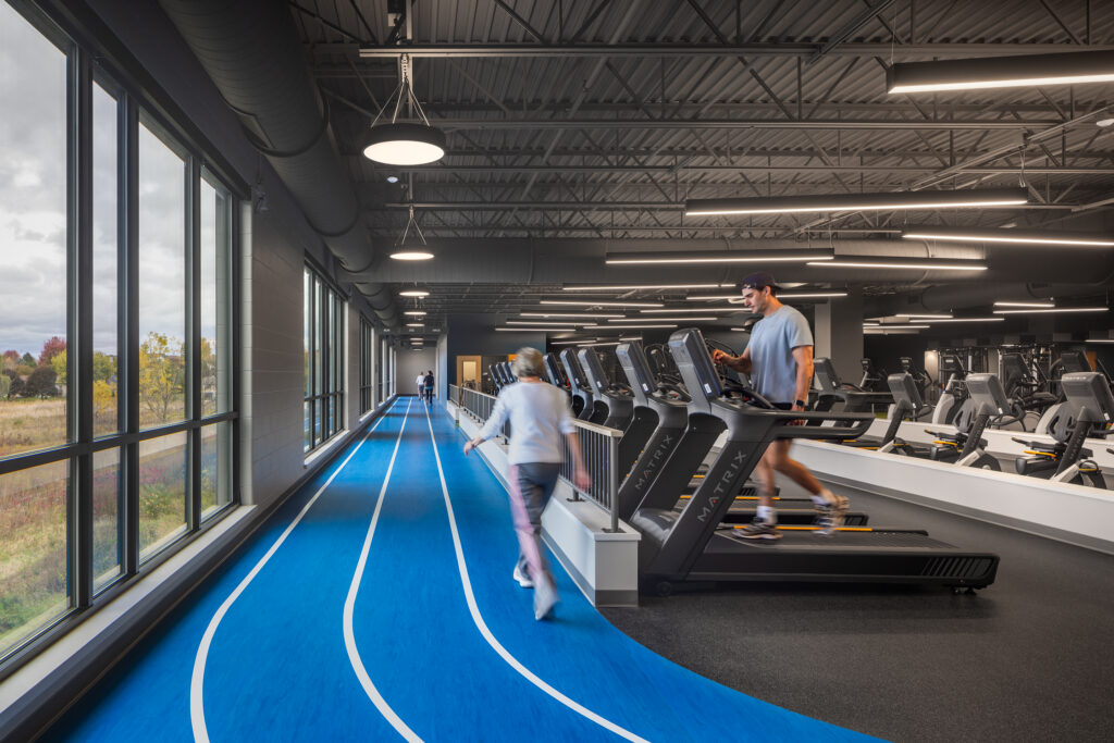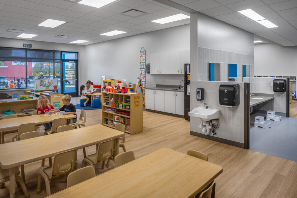 The project, completed in 2025, modernized the facility while addressing community priorities. A significant childcare addition features direct access to secure outdoor play areas, ensuring safety, visibility, and privacy. The design also incorporates extensive use of glass to bring natural light into previously windowless spaces, creating a more welcoming and vibrant environment.